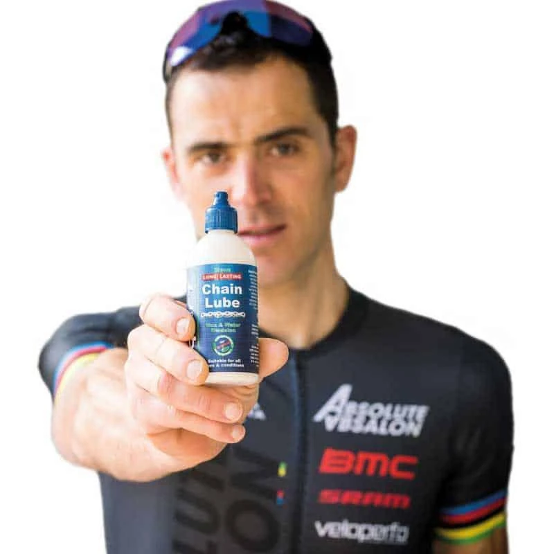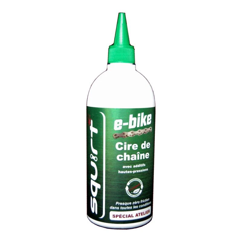 Squirt lube est un lubrifiant chaîne à base de cires et d’eau