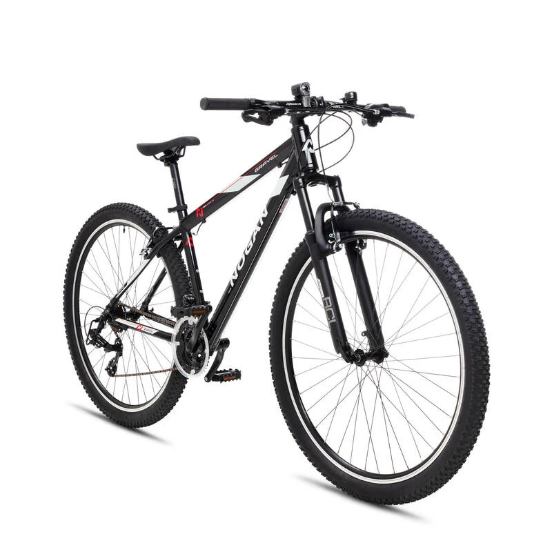 Le Nogan Gravel PRO 27.5 est un VTT semi-rigide polyvalent avec un cadre en aluminium léger et une fourche à suspension RCL Raceline. Avec éclairage LED et 21 vitesses.